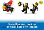 Ce set de sauvetage LEGO City contient tout ce dont votre enfant a besoin pour construire un avion de pompier jouet et une scène de feu de forêt avec des minifigurines d’un pilote, d’un opérateur d’extincteur et d’une pompière avec un jetpack