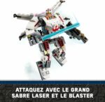 Armure robot X-wing LEGO à construire – Le robot jouet possède des mains, des bras, des jambes et des pieds mobiles, un cockpit ouvrant pour minifigurine et un jetpack X-wing réglable, ainsi qu’un grand sabre laser et un blaster lance-tenons