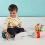 Ce jeu d’éveil Jack le lion rouleau sonore permettra à votre enfant de développer son ouïe et sa motricité fine. Il dispose de 4 petits cylindres dont l’un représente la tête de Jack le lion. Il amusera bébé avec sa multitude de motifs et de sons. Chaque partie qui compose le petit lion propose un son différent dans un tissu coloré et tout doux. L’une d’entre elles dispose de deux poignées permettant aux petites mains de l’attraper facilement, une autre à rayures bleu marine et turquoise possède un hochet à billes à l’intérieur pour que votre enfant le secoue et fasse de la musique. Grâce aux velcros, tous les rouleaux peuvent facilement être montés et démontés. Ce hochet 4 en 1 est parfait pour divertir les tout-petits !