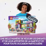 Les enfants vont adorer passer du temps au centre de la communauté avec le set maison de poupée LEGO Friends Heartlake City L’Immeuble de La Grand-Rue (41704). Il comprend 3 bâtiments qui se connectent pour se transformer en maison de poupée dans un quartier avec des boutiques, une épicerie et des appartements LEGO. Il y a un salon de coiffure LEGO Friends avec une mini-poupée coiffeuse, un marché alimentaire international et un café LEGO Friends avec des livres. Tous les éléments sont modulables : les enfants créatifs peuvent donc s’amuser à configurer les bâtiments comme ils le souhaitent ! Il est fourni avec 7 mini-poupées et 4 figurines d’animaux pour permettre des possibilités de jeu de rôle infinies. Les enfants peuvent changer de look dans le salon de Trevor, passer du temps dans l’appartement de Dottie, faire du skateboard avec Stéphanie ou tenir la porte pour aider Harper, qui est en chaise roulante, à entrer dans le café. Ce grand set de 1 682 pièces permet à toute la famille de participer au processus de construction pour reproduire un modèle qui constituera une pièce à exposer avec fierté dans la chambre des enfants. Faites découvrir aux jeunes constructeurs la communauté accueillante LEGO Friends, où tous les enfants se sentiront bien. Les jouets créatifs LEGO Friends constituent un cadeau d’anniversaire ou une surprise idéale pour les filles et les garçons qui adorent passer du temps avec leurs amis. Il contient 1 682 pièces.