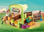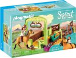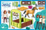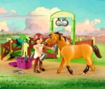 9478 – Lucky et Spirit avec boxLucky et Spirit ont un lien indissociable. Ensemble, ils tentent de se frayer un chemin dans un nouveau monde étranger. Lucky n’a jamais appris à monter à cheval, elle hésite au début, mais son amitié avec Spirit facilite les choses. Ensemble, ils vivent de nombreuses aventures. Avant chaque sortie, Lucky se rend à l’écurie pour le brosser ou lui donner du foin.