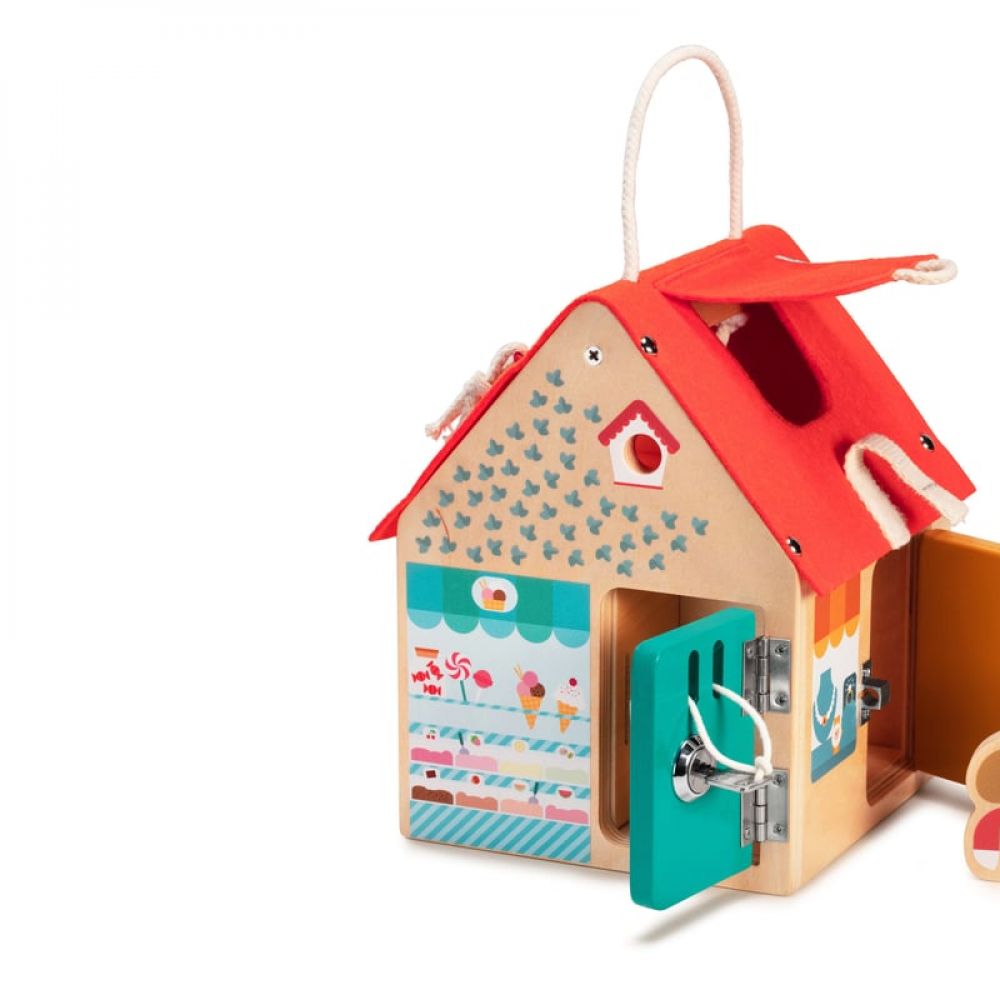 Attention ! Un cambrioleur rusé se promène. Il faut vite vérifier que toutes les serrures de la petite maison sont bien verrouillées. Ou peut-être es-tu le complice du cambrioleur et est-ce toi qui ouvre toutes les serrures pour lui ? Cette petite maison permet aux bambins de faire connaissance de manière ludique avec différents systèmes de fermeture et stimule aussi l’imagination.