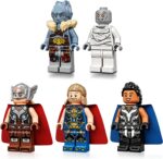Ce set de 564 pièces inclut les minifigurines de Thor, Mighty Thor, Valkyrie, Korg et Gorr, ainsi que des accessoires et des armes.