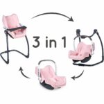 3 en 1 : avec la chaise haute avec tablette, la balancelle et le siège auto, tout le nécessaire est présent pour prendre soin de ton bébé comme une véritable maman ou un véritable papa