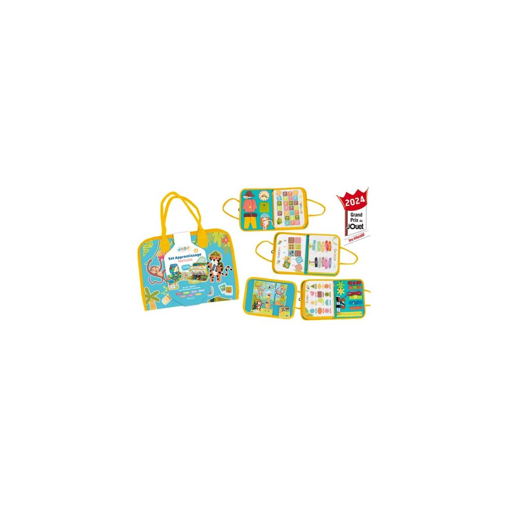 Le tout en format valisette pour accompagner les enfants dans tous les déplacements, en vacances ou lors d’une balade, ils pourront aussi aborder les premiers apprentissages tel que les formes, les couleurs, les lettres, les chiffres…