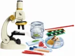 Ce coffret contient des lames préparées pour des observations incroyables et de nombreux accessoires pour réaliser des expériences amusantes : des lames en plastique, des éprouvettes, des pipettes, une loupe, un observatoire à insectes et de nombreux autres accessoires.