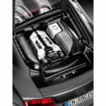Maquette de la super car Audi R8.- Reproduction fidèle de la carrosserie, avec nombreux détails; Habitacle détaillé, avec reproduction authentique du tableau de bord et sièges structurés; Moteur V8 central hyper-détaillé, en plusieurs éléments; Ligne d’échappement séparée; Reproduction fidèle des jantes; Capot du moteur mobile; Suspensions détaillées; Châssis structuré détaillé; Jantes chromées; Planche de décalcomanie généreuse, avec immatriculations internationales (D, NL, F, I, B, GB)