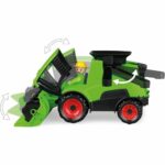 LENA Ensemble de moissonneuse-batteuse Truckies avec mécanisme de coupe rotatif à enlever et à suspendre, en plastique de qualité supérieure et avec axes en acier galvanisé de 6 mm ; figurine de jeu d’environ 8 cm au design fermier