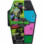 La poupée Ghoulia Yelps se démarque avec ses cheveux colorés et son maquillage audacieux. Rangez-la avec ses Frayeurs Néon dans son casier en forme de cercueil, pour un rangement et un transport faciles !