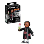 Tobi est le partenaire de Deidara et reste entouré de mystère… Afin de cacher son identité, il porte un masque. Grande surprise lorsque l’on découvre qui se cache derrière, lorsque le masque se brise ! Le set Playmobil Obito Playmobil Naruto 71101 inclut le personnage de Tobi – Naruto Shippuden, portant une cape noire avec des nuages rouges ainsi qu’un masque en spirale orange.