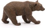L’ours brun est une espèce d’ours qui, à l’état sauvage, à une espérance de vie de 30 ans. Relativement imposant il peut mesurer jusqu’à 3,5m debout pour 700 kg ! Il possède une belle fourrure pouvant aller du blond au noir, une tête grande et ronde ainsi qu’une bosse de muscle au dessus des épaules. Cette dernière est essentielle et donne à l’ours de la force au niveau des antérieurs, notamment pour creuser. Quand vient l’hiver l’ours brun se retire dans des endroits protégés du froid tels qu’une caverne ou une crevasse et hiberne