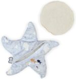 Cette peluche toute douce contient une poche amovible remplie de billes d’argile et de lavande.