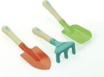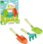 Set de 3 petits outils de jardin en bois et en métal pour les enfants de plus de 3 ans, Contient 1 pelle, 1 râteau et 1 transplantoir pour initier les enfants au jardinage,