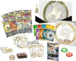 Tout ce que les Dresseurs passionnés désirent est réuni dans cet écrin ! De nouveaux Pokémon font leur apparition dans cette nouvelle extension Pokémon Epée et Bouclier – Stars Etincelantes ! Débordant de lumière, Arceus-VSTAR descend des cieux pour partager ses pouvoirs célestes avec d’autres Pokémon-V. Découvrez des constellations scintillantes et commencez votre voyage vers la grandeur stellaire avec l’extension Épée et Bouclier – Stars Étincelantes du JCC Pokémon. Ce coffret exceptionnel contient : Contient 8 boosters de la l’extension Epée et Bouclier – Stars Etincelantes, 65 protège-cartes, 45 cartes Énergie, 1 guide de jeu de l’extension, 6 dés marqueurs de dégâts, 1 dé lancer de pièce autorisé en compétition, 2 marqueurs d’États Spéciaux en acrylique et 1 coffret de collection avec 4 séparateurs, 1 carte à code. Chaque booster contient 10 cartes.