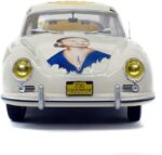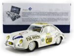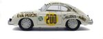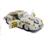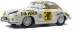 Avec l’arrivée de la Porsche 356 chez Solido au 1/18e, on en profite pour se pencher rapidement sur le modèle aux couleurs de la Panaméricaine de 1953, aux couleurs d’un visage marquant de l’Argentine des années 50, Eva Perón. Première dame d’Argentine, elle a eu une importante influence sociale et féministe dans ce pays, avant de décéder d’un cancer à l’âge de 33 ans, en 1952. C’est Jacqueline Evans, en 1953, qui engage cette voiture à la mémoire d’Eva Perón, et qui pilote la Porsche, sans pour autant avoir terminé la course, vers sa renommée actuelle. On l’avait déjà vue au 1/43e chez BBR ou Detailcars, entre autres. La voilà désormais au 1/18e, profitant, d’ailleurs, du fait que l’originale ait été entièrement restaurée, il y a deux ans, par l’Atelier 540.