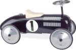 Ce porteur voiture de course en métal noir rétro fera de vos enfants de vrais pilotes de course ! A monter soi-même.