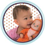Adorable, ce bébé est vêtu d’un costume d’animal et est maquillé comme tel ! Son visage et ses membres sont en plastique mais son corps est souple et en tissu afin que votre enfant puisse le prendre dans ses bras et le câliner ! Très léger, il sera facile pour lui de le tenir et de l’emmener partout ! Votre petit veut un bisou ? Il n’a qu’à presser le ventre de son poupon pour qu’il lui en fasse autant qu’il veut ! Votre enfant ne pourra plus se passer de son Minikiss animal ! Grâce à ce poupon, votre enfant va développer son imagination en inventant des histoires pour son poupon et en imitant ses parents.