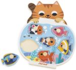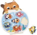 Puzzle en bois Aquarium 6 pièces Attention, un félin coquin est très intéressé par la vie dans ce bel aquarium ! Et vos tout-petits le seront certainement tout autant que lui ! Pour les bébés à partir de 18 mois qui commencent à saisir et avoir des gestes de plus en plus affinés, ce puzzle en bois à tenons est parfait ! Grâce à la logique en pleine action de nos chers bambins, 6 poissons tropicaux devront retrouver leur emplacement avant que le chat ne les saisisse. Ils ont de magnifiques couleurs et formes, ce qui ravira les plus petits qui adorent les habitants des fonds marins. Les prises en bois sur chaque pièce faciliteront la saisie par les enfants, ce qui permettra de travailler la motricité fine. Après quelques essais, les plus petits prendront plaisir à trouver la bonne correspondance et à recommencer pour reconstituer la jolie scène. Descriptif du puzzle en bois pour bébé de chez Janod, le puzzle Aquarium 6 pièces : -Age : à partir de 18 mois. -Dimensions : 27.9 cm x 20.5 cm x 1 cm.