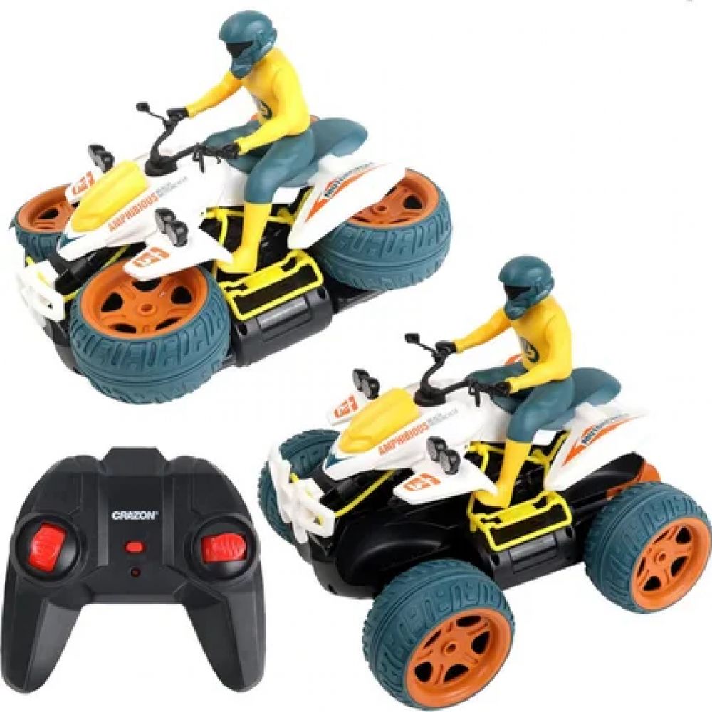 1 voiture quad à l’échelle 1/14 de 2,4 GHZ et une télécommande d’une portée de 25 m. Vitesse de 9 km/h, tout en restant stable et contrôlable. Elle a besoin de 1 batterie 7,4V et chargeur USB inclus + 2 piles AA pour la télécommande.