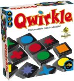 Quelques secondes suffisent pour apprendre à jouer à Qwirkle ! Le but : associer des tuiles de formes ou de couleurs identiques. Mais si les règles sont simples, la victoire passe par une audace tactique et une stratégie bien élaborée. Les règles expliquées en 30 secondes : – Le but : réaliser des lignes de tuiles ayant la même forme ou la même couleur (par exemple, une ligne de tuiles jaunes ou une ligne de tuiles carrées). – Chaque joueur commence en piochant 6 tuiles au hasard. – On peut jouer autant de tuiles que l’on veut dans une ligne (1, 2 voire 6 tuiles d’un coup). – On en re-pioche autant que nécessaire pour avoir toujours 6 tuiles. – A chaque coup, le joueur marque autant de points qu’il y a de tuiles dans la ligne (par exemple, si je joue la 3ème et la 4ème tuile dans une ligne, je marque 4 points). – Compléter une ligne de six tuiles rapporte 6 points plus un bonus supplémentaire de 6 points (soit 12 points !). – Quand une tuile complète deux lignes (une horizontale et une verticale), on marque les points dans les deux sens. – Celui qui a le plus de points à la fin de la partie a gagné. Qwirkle se compose de 108 tuiles en bois avec 6 formes de 6 couleurs différentes. Chaque joueur essaye de marquer le maximum de points en constituant des lignes de tuiles ayant une couleur ou une forme en commun. Les points forts : Jeu familial : Qwirkle est jouable à partir de 6 ans. Plébiscité : Médaille d’or au « Parents’ Choice » (Prix du Choix des Parents) aux USA. Passionnant : les joueurs brûlent d’envie de battre leurs scores. Simple et tactique à la fois.