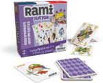 Avec Rami Junior, initiez vos enfants au très connu jeu de rami ! Ce jeu fera le plaisir de petits et le bonheur des grands avec différents niveaux de jeux pour les doués, et les un peu moins doués. Avec toutes ses couleurs et ses dessins rigolos, ce jeu permettra aux enfants d’apprendre les règles du rami, tout en s’amusant. Le but ? Se débarrasser de toutes ses cartes en premier ! Pour cela, créez un maximum de combinaisons avec vos cartes. Il y a deux types de combinaisons : la série, trois ou quatre cartes de même valeur, mais de couleurs différentes qui se suivent, et la tierce, séquence d’au moins trois cartes consécutives de même couleur. À chaque tour, le joueur pioche une carte, pose une combinaison (s’il le peut) et se défausse d’une carte. Une fois la partie finie, on compte les points, mais il ne faut pas en avoir le plus. Au contraire, le joueur avec le moins de points est le gagnant ! À partir de 6 ans. De 2 à 6 joueurs. Durée approximative : 20 minutes.