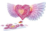 Commence par monter ta structure 3D cœur à l’aide des numéros indiqués. | Attache un fil à un crochet et enroule autant de fils que tu veux afin de créer ton splendide cœur. | Une fois fini, suspend ton cœur et ajoute une touche romantique à ta chambre avec ses accessoires ailes et papillons ! | Ou bien tu peux poser le cœur sur un meuble et le personnaliser avec ses oiseaux et ses fleurs ! |