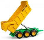 Descriptif : Cette remorque à benne basculante trois essieux du fabricant belge Joskin est l’une des plus grandes et des plus massives du marché. Elle a été conçue pour le chargement et le transport de marchandises lourdes et ce, dans des conditions extrêmes comme lors de travaux de terrassement ou encore dans le domaine agricole. Le mastodonte original évolue parfaitement sur des terrains peu praticables et a une capacité de 24 tonnes ou de 29 mètres cubes maximum. Cet impressionnant modèle réduit de BRUDER a été développé à l’instar de la gamme originale Trans-SPACE et dispose, pour faire honneur à notre slogan just like the real thing (comme dans la réalité), d’une benne basculante immobilisable avec ouverture de la trappe arrière. Le châssis 3 essieux aplanit toutes les irrégularités du terrain. Cette benne est le compromis idéal pour les nouveaux tracteurs de la gamme Profi-série. Mais également adéptés avec les Unimog.