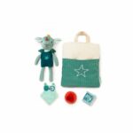 C’est l’heure du dodo! Pouvez-vous aider Joe le dragon à se préparer à aller au lit? Il va sur le petit pot, enfile son pyjama, met son lange et s’installe ensuite confortablement avec son doudou dans le petit lit douillet. Après la petite histoire du soir, il éteint la lampe et ferme ses petits yeux. L’étoile phosphorescente installée sur son petit lit fait office de veilleuse réconfortante. Expérimentez la routine du soir d’une manière ludique avec Joe. Un ensemble qui apporte sérénité et structure au rituel.