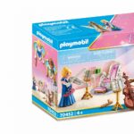Découvrez la vie féérique des princesses dans le Grand Palais de princesses ! La piste de danse tournante, la calèche, les chevaux et les différentes pièces du Palais vont permettre aux enfants d’imaginer mille et une belles histoires ! Les deux princesses sont des musiciennes hors pair ! Elles animent le palais en jouant du violon, de la contrebasse, de la harpe et de la flûte du lever jusqu’au coucher du soleil. Contient deux personnages.