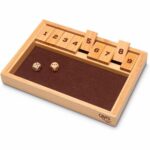 Le plateau de jeu comporte une piste de dés et des clapets numérotés de 1 à 9 qui permettent en les fermant ou en les abaissant, de valider le tirage obtenu. À la fin de chaque tour, il faut noter les scores de chaque joueur afin de suivre le déroulement de la partie complète de Shut the box.