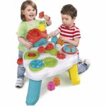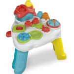 Grâce aux fentes, l’enfant peut faire tomber les Clemmy dans les trous se trouvant dans les pieds de la table puis les récupérer, développant ainsi sa compréhension de la relation de cause à effet.