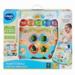 En mode assis, Bébé joue sur le tableau d’éveil interactif et découvre les animaux, les couleurs, les formes et les nombres en musique !