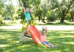 Avec ce premier toboggan, les enfants seront en parfaite sécurité. L’assise est en effet très stable et la petite échelle en plastique assure une bonne préhension aux enfants. La pente est assez faible et la réception de l’amateur de glissade est amortie vers le bas du toboggan. La possibilité d’adapter une lance d’arrosage sur le haut du jeu lui donne des allures de toboggan aquatique, ce qui amusera beaucoup les enfants. Ils auront presque l’impression de jouer dans un parc d’attraction.