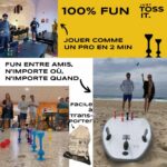 Mix entre pétanque et fléchettes, se joue à l’intérieur ou à l’extérieur, au sol ou à la verticale. Fléchettes souples 100% en silicone avec une ventouse puissante et durable.