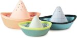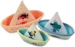 Jack, Pablo et Marius partent faire un tour sur leur voilier. Le bain devient le grand océan où votre enfant pourra vivre les plus folles aventures. Lorsqu’il retournera les petits bateaux, ils se transformeront en fontaines, grâce aux petits trous dans le néoprène. Deux fois plus de plaisir aquatique ! Adoptez ce lot de 3 petits bateaux flottent sur l’eau pour que l’heure du bain reste un moment ludique et agréable.