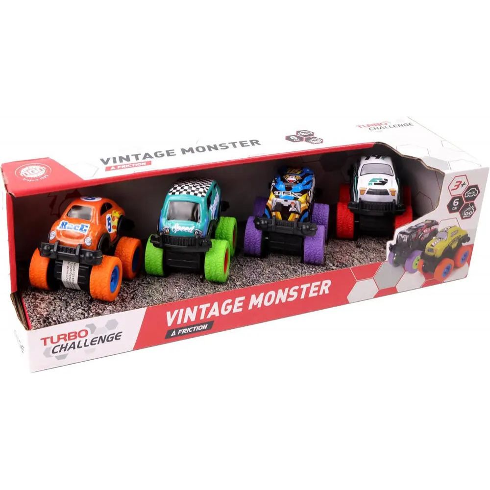 4 monster car de 6 cm à rétro-friction avec une coque en métal.