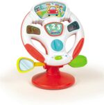 Un volant électronique interactif avec des effets sonores et lumineux pour se lancer dans une course pleine d’aventures. Les boutons éducatifs guident l’enfant à la découverte des effets sonores comme le cri des animaux ou de jolies mélodies qui divertiront le bébé. La voiture se déplace de droite à gauche le long de la route quand bébé tourne le volant. La clé de la voiture permet d’utiliser le jouet avec ou sans le son. Le rétroviseur et le levier de vitesses bougent comme dans une vraie voiture et permettent à l’enfant de développer ses capacités motrices. Le volant peut être fixé sur une surface lisse grâce à sa ventouse, l’enfant peut ainsi l’utiliser comme il le souhaite.